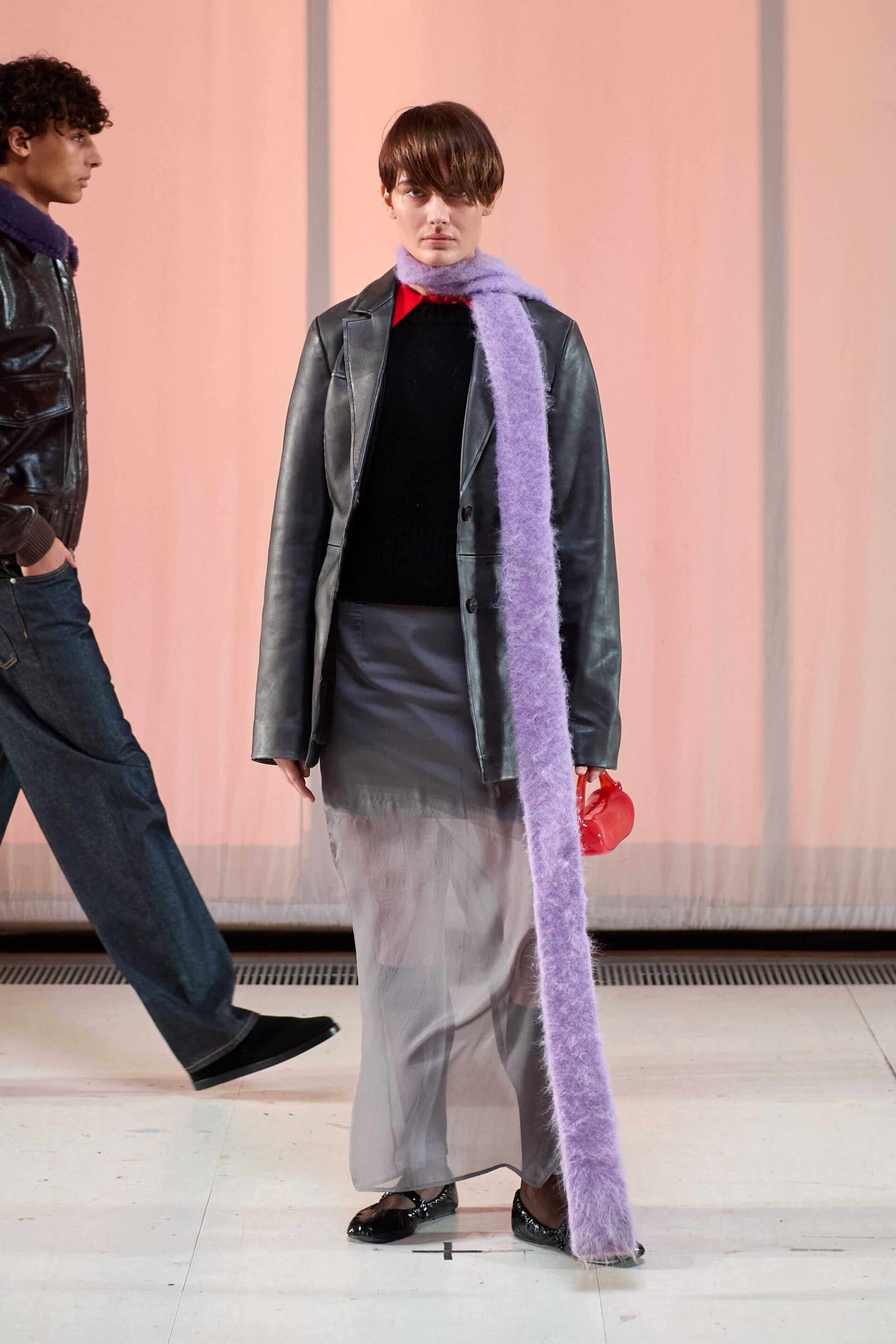 Kromě růžové barvy se na CPHFW objevil i další hit – fialová. Neobjevila se však na velkých plochách, ale spíše jako rafinovaný detail na doplňcích. Zvláštním překvapením byly dlouhé, tenké pletené šály v lila odstínech. Dobrou zprávou je, že tento trend můžete vyzkoušet hned teď. Stačí si pořídit fialový svetr, který rozjasní ponuré dny, a zkombinovat ho s džíny nebo šedými kalhotami.