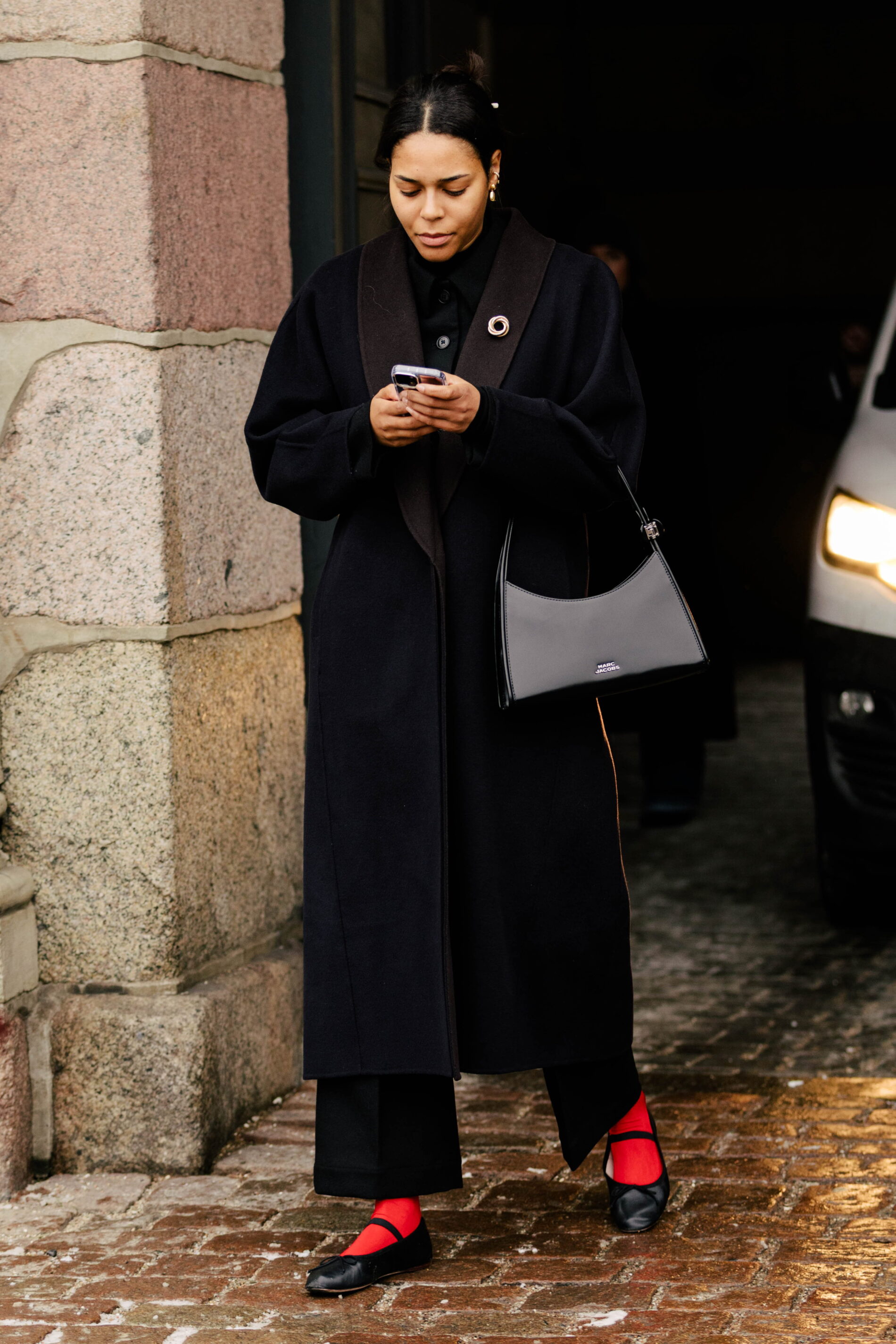 Dalším zajímavým a snadno napodobitelným trikem byly červené pletené ponožky v otevřených botách, rukavice, a samozřejmě šály a šátky. Tento detail dodává outfitu hravost a šmrnc, aniž by působil přehnaně. Jde o perfektní způsob, jak oživit svůj stávající šatník bez velkých investic. Stačí jeden červený doplněk a jinak nenápadný vzhled získá osvěžující nádech.