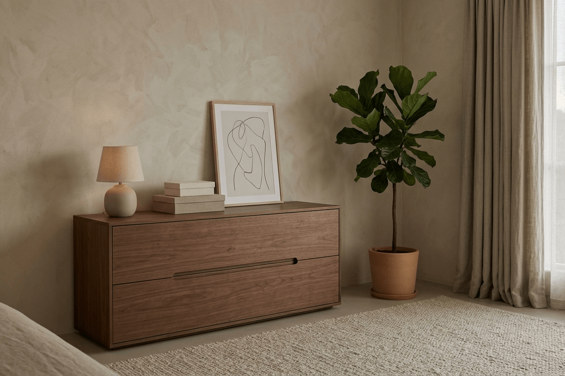 Velký rozdíl udělá i světlo. Stačí vyměnit studené žárovky za teplé a přidat jednu lampu navíc. Cocooning totiž nestojí na luxusním nábytku, ale na atmosféře. Dalším krokem je omezení vizuálního šumu. Cocooning vyžaduje, aby ložnice nepůsobila jako sklad. Uzavřené úložné boxy, jednoduché organizéry nebo komoda s čistými liniemi dokáží vytvořit dojem pořádku bez přehnané sterility.